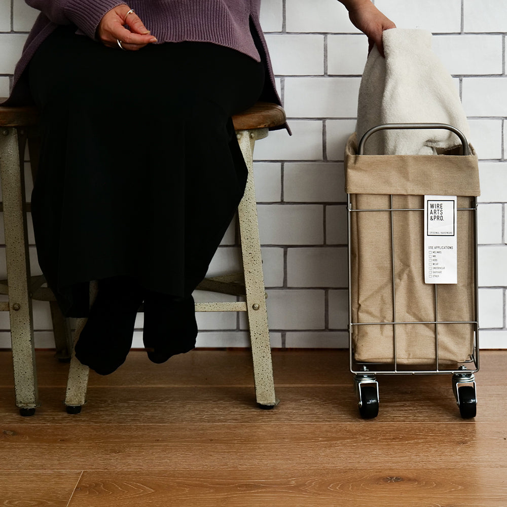 WIRE ARTS & PRO.FOLDING laundry SQUARE BASKET WITH CASTER_28L